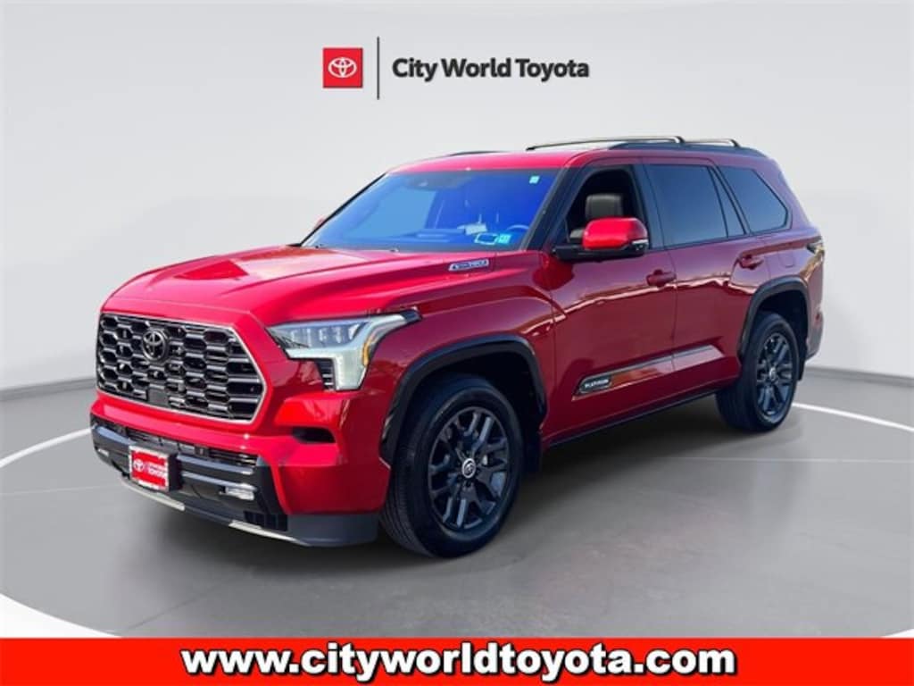 CARFAX One-Owner. Supersonic Red 2024 Toyota Sequoia Platinum 4WD 10-Speed Automatic V6 Hybrid * 1 OWNER, * NAVIGATION, * SUNROOF / MOONROOF, * LEATHER, * ALLOY WHEELS, * BLUE TOOTH, * BACKUP CAMERA, * THIRD ROW SEAT, * 4WD, Sequoia Platinum, V6 Hybrid, 10-Speed Automatic, 4WD, Supersonic Red, Black w/Leather Seat Trim.